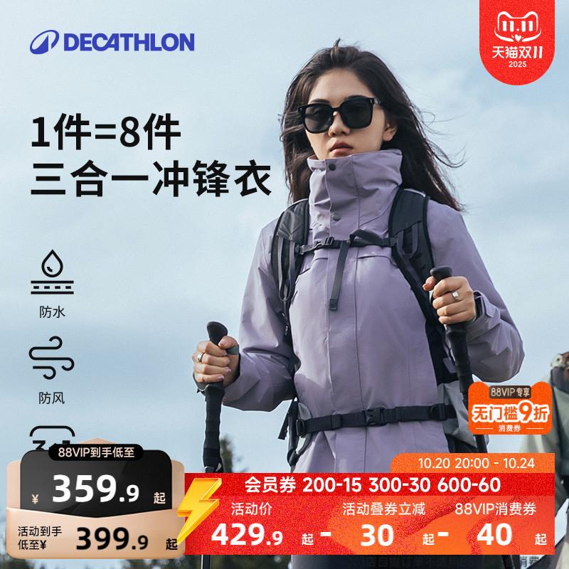 迪卡侬冲锋衣户外女三合一羽绒外套男抓绒防风防水夹克登山服ODW