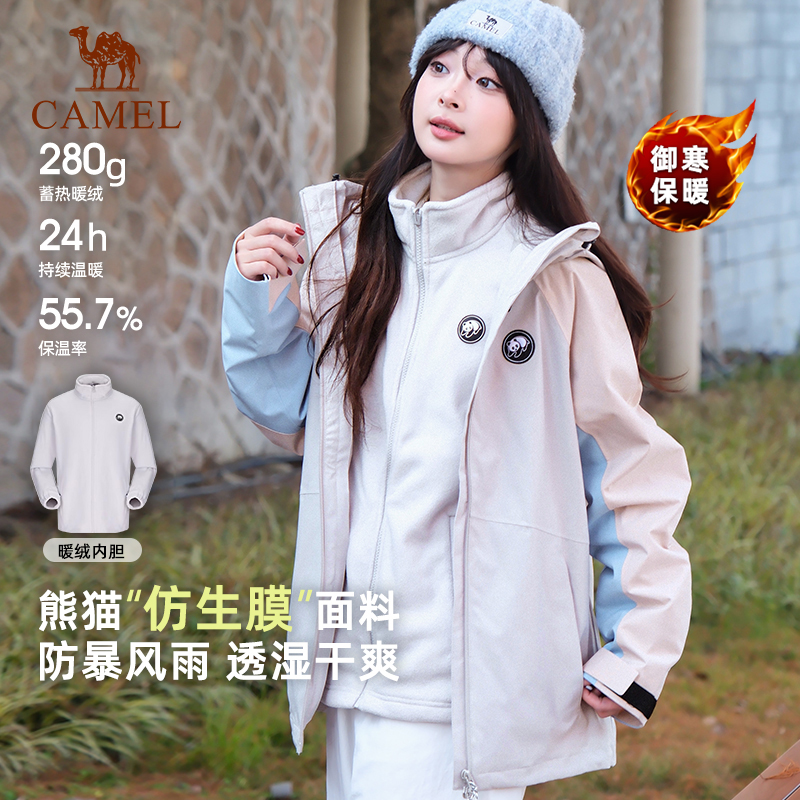 骆驼熊猫户外冲锋衣女款2025新款秋冬三合一抓绒内胆登山服外套男
