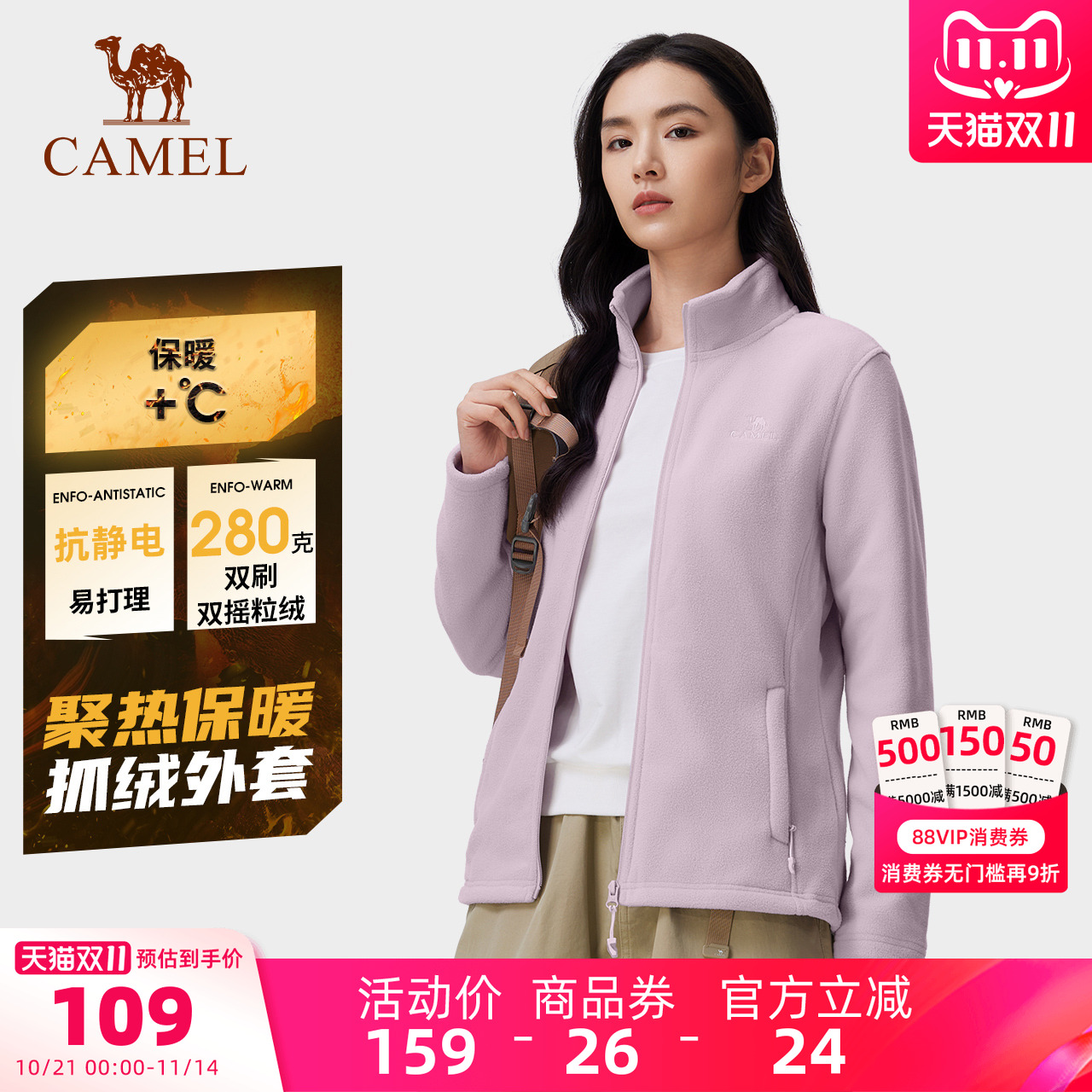 骆驼户外珊瑚绒抓绒衣女秋冬双面绒外套加厚保暖抗静电冲锋衣内胆