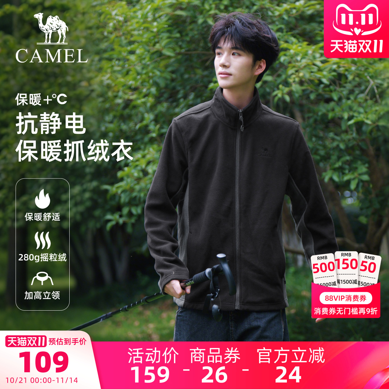 骆驼户外抓绒衣女立领防风加热保暖抗静电冲锋衣内胆摇粒绒外套男