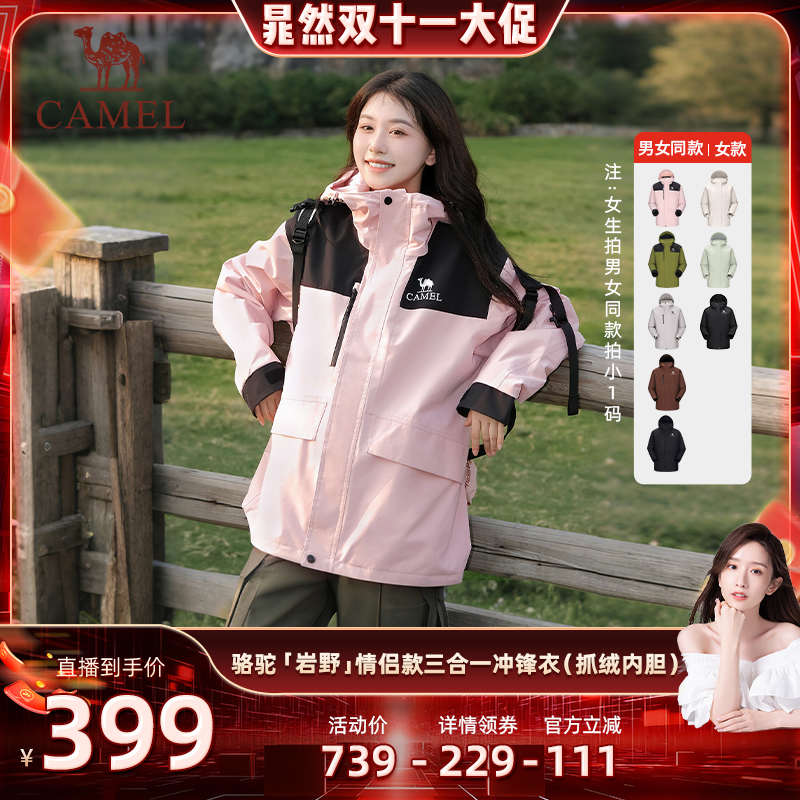 【晁然推荐】骆驼户外岩野冲锋衣女款三合一外套抓绒内胆登山服男