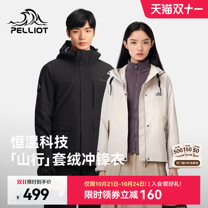 【山行】伯希和户外冲锋衣女三合一抓绒内胆新款防风防雨登山服男