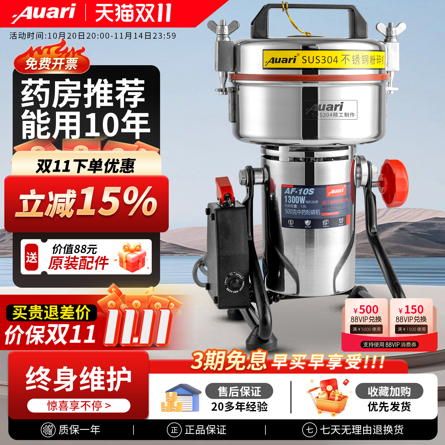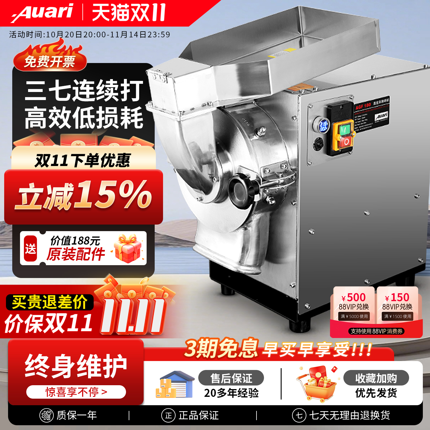 Auari/奥力商用中药材粉碎机药房小型三七打粉机超细研磨机磨粉机