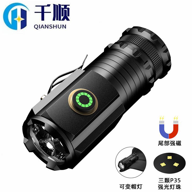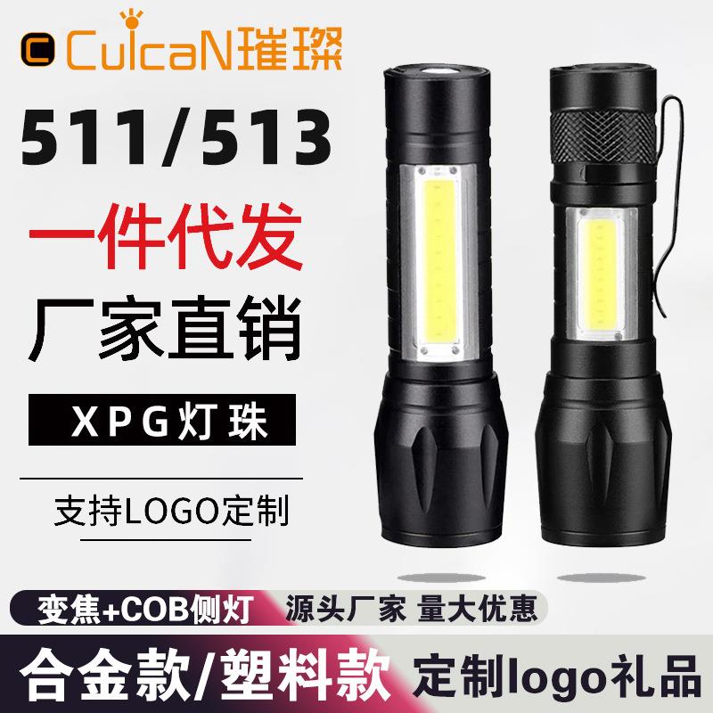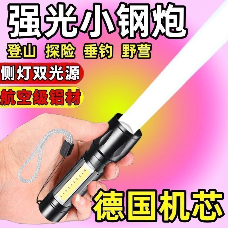 可充电手电筒迷你强光led便携小手电带侧灯家用变焦手电筒跨境