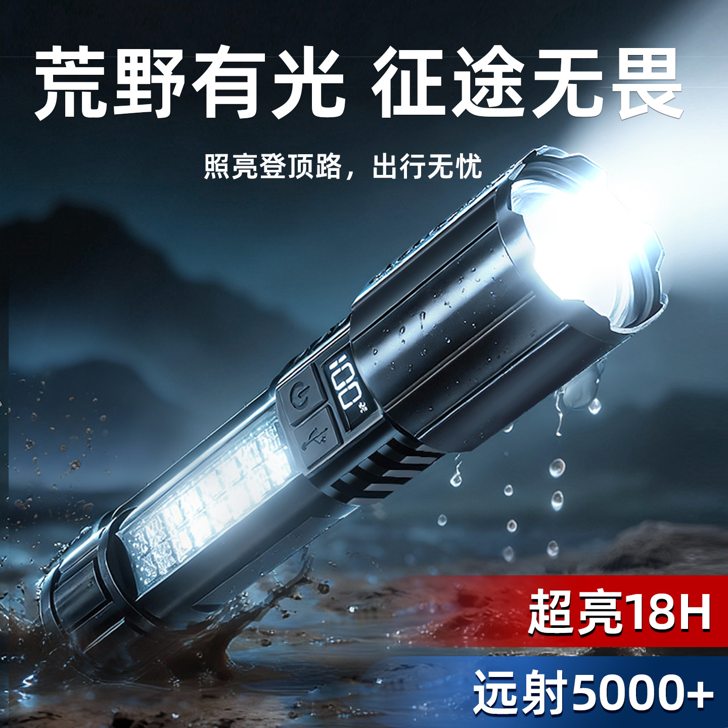 - 手电筒 强光 户外 充电 防水