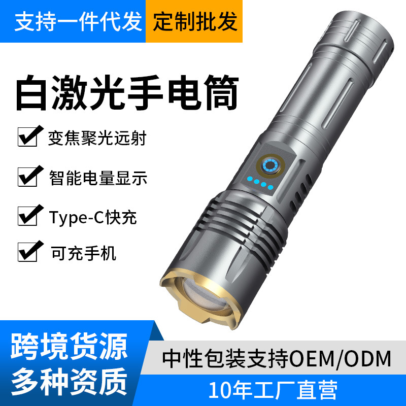 多功能白激光手电筒强光超亮远射伸缩变焦便携式户外可充电手电筒