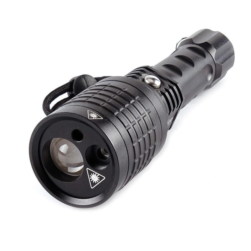 跨境强光可充电手电筒红绿激光灯超亮变焦远射防水户外露营家用灯