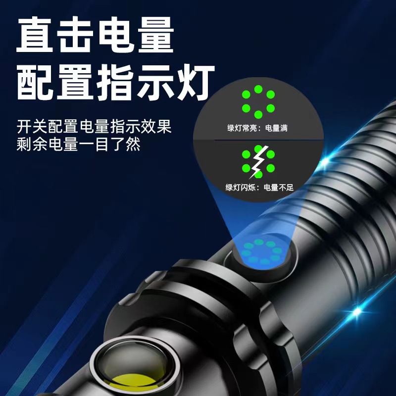 P900超亮强光可充电手电筒变焦远射疝气灯超长续航户外应急远射灯