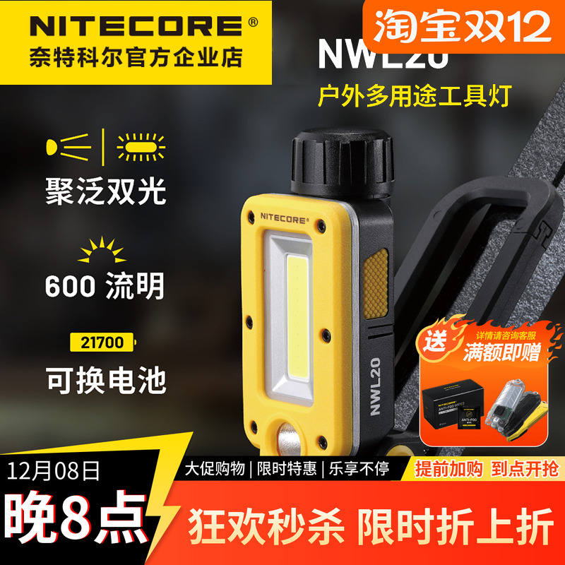 奈特科尔NWL20工作灯户外强光超亮可充电手电筒led磁吸汽修维修灯