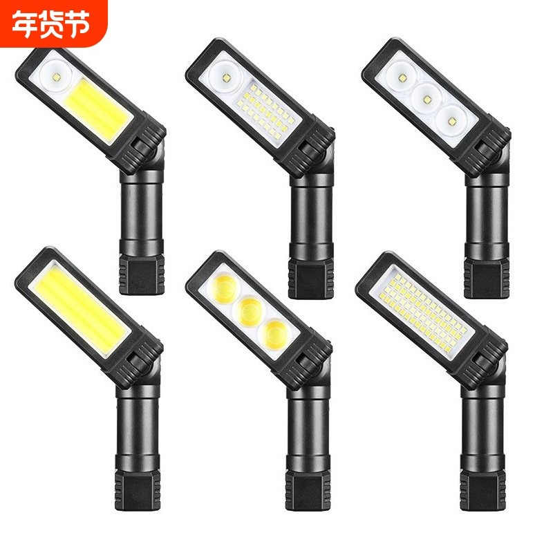 USB充电COB折叠工作灯 带磁铁红灯野营灯 露营用可充电手电筒