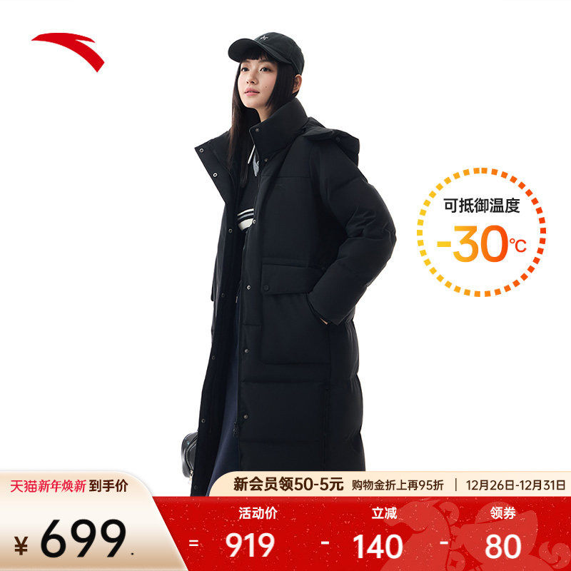 安踏速暖羽绒服丨长款过膝羽绒服女士鸭绒保暖棉服外套162518903