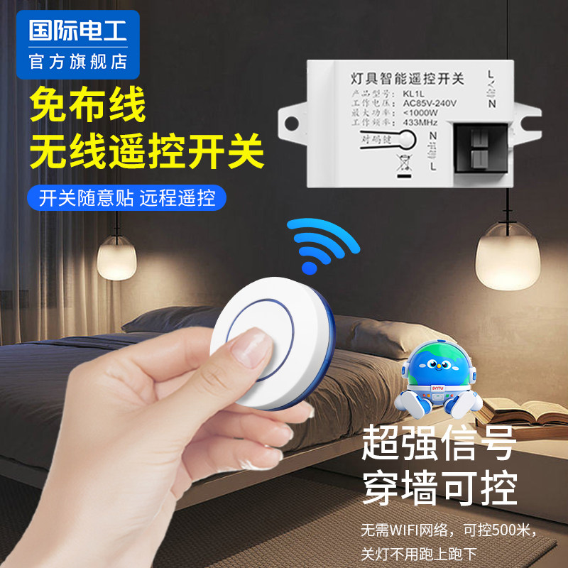 懒人关灯神器家用220V免布线无线遥控接收器双控远程遥控随意贴
