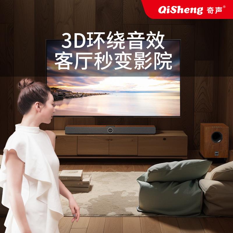 奇声S5回音壁电视音箱音响2.1家庭影院K歌带无线麦克风木质套装
