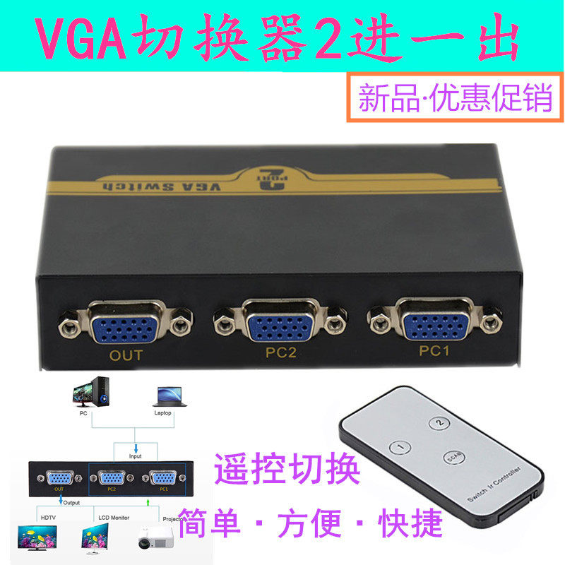 遥控VGA切换器2进1出 高清二口视频电脑显示器转换共享器二进一出