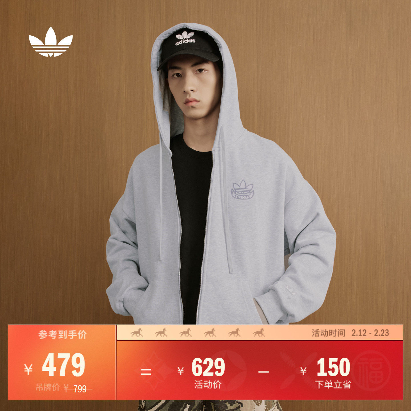休闲日常针织拉链连帽夹克外套男女秋季adidas阿迪达斯三叶草