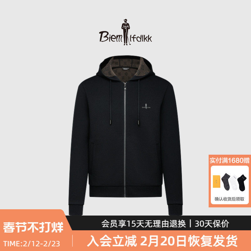 【澳洲静奢羊毛】比音勒芬秋季男士休闲外套舒适亲肤连帽羊毛夹克