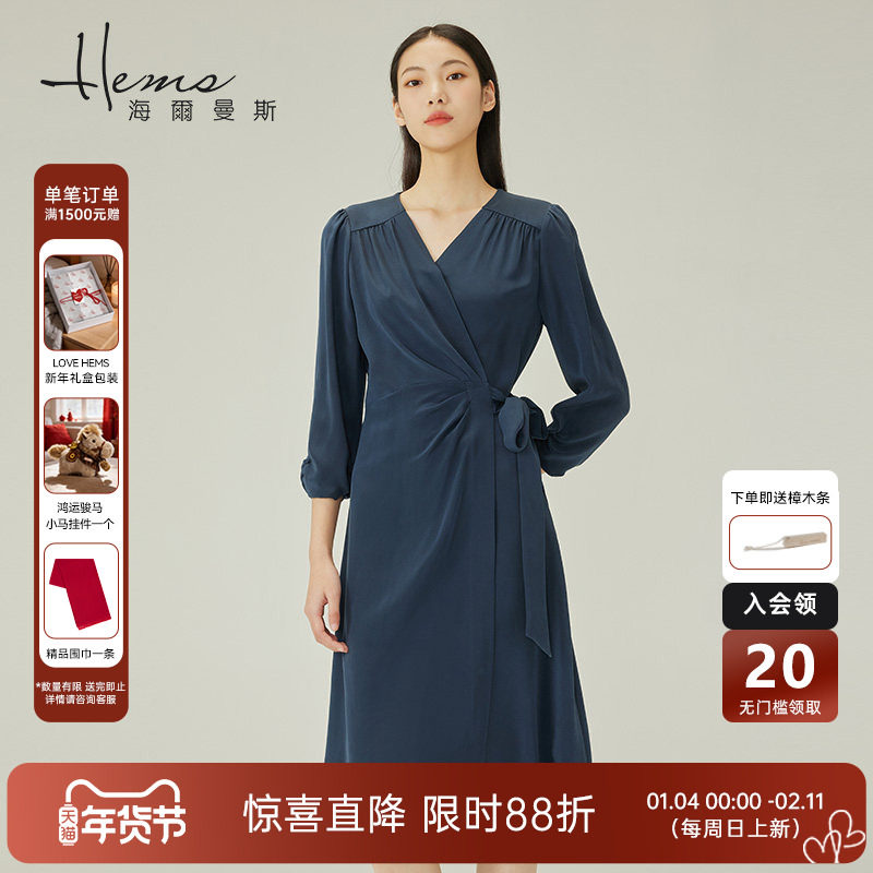 - 长袖真丝连衣裙 女