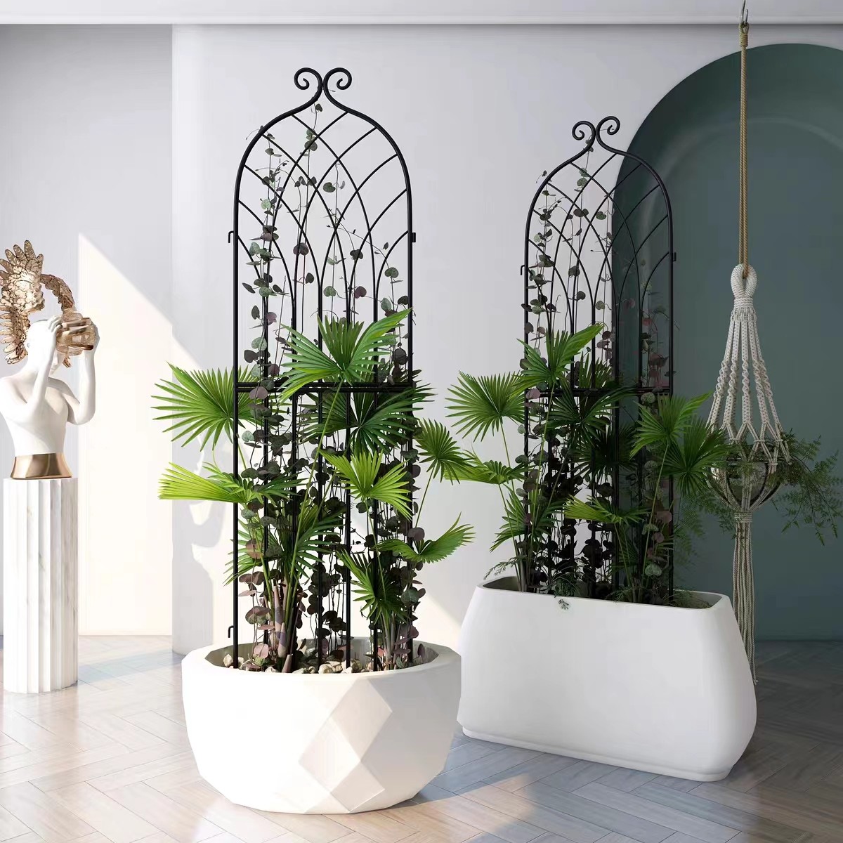 园艺拱门爬藤架铁艺拱形架铁线莲攀藤月季葡萄支架种植箱户外花架