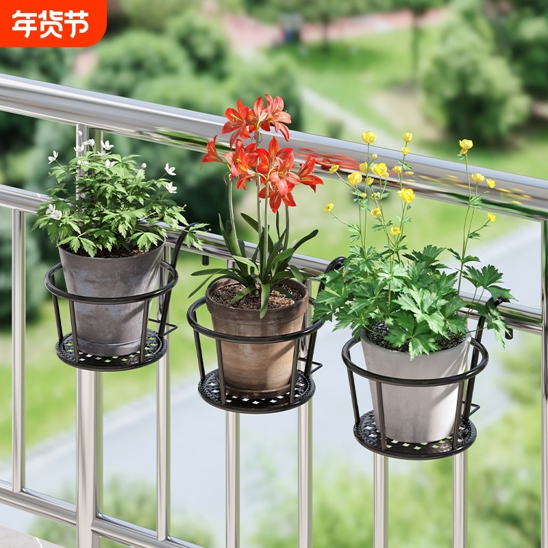 阳台简约绿植花卉白色户外悬挂壁挂吊兰花架子室外铁绿萝塑料花盆
