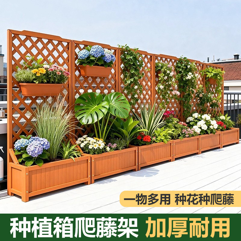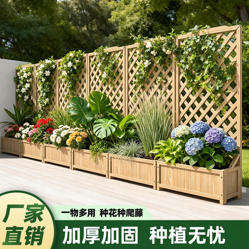 户外花架爬藤架庭院花园栅栏围栏隔断防腐木种植箱露台阳台花盆架