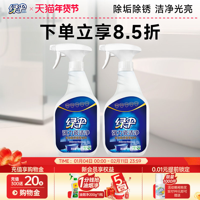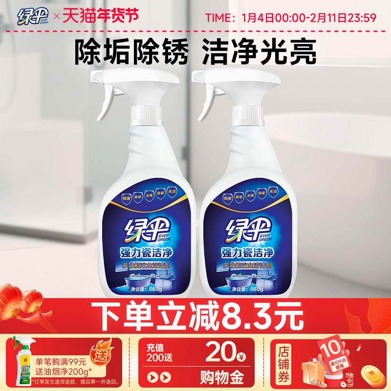 绿伞强力瓷洁净660g*2瓶瓷砖清洁剂浴室卫生间地板砖清洗去污除垢