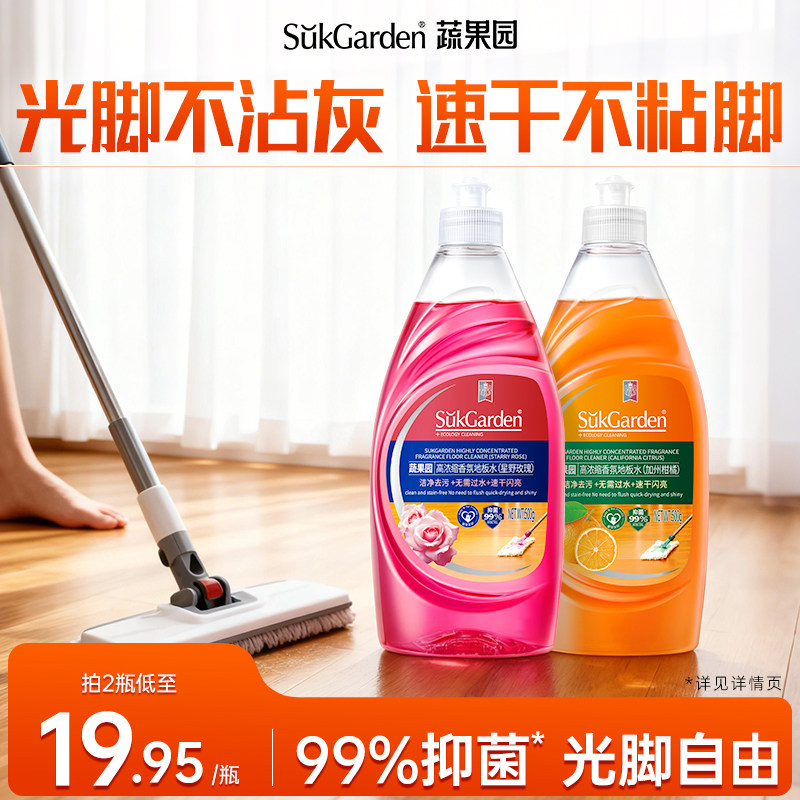 蔬果园拖地地板瓷砖清洁剂液婴儿宠物扫地机留香无水印地板清洗剂