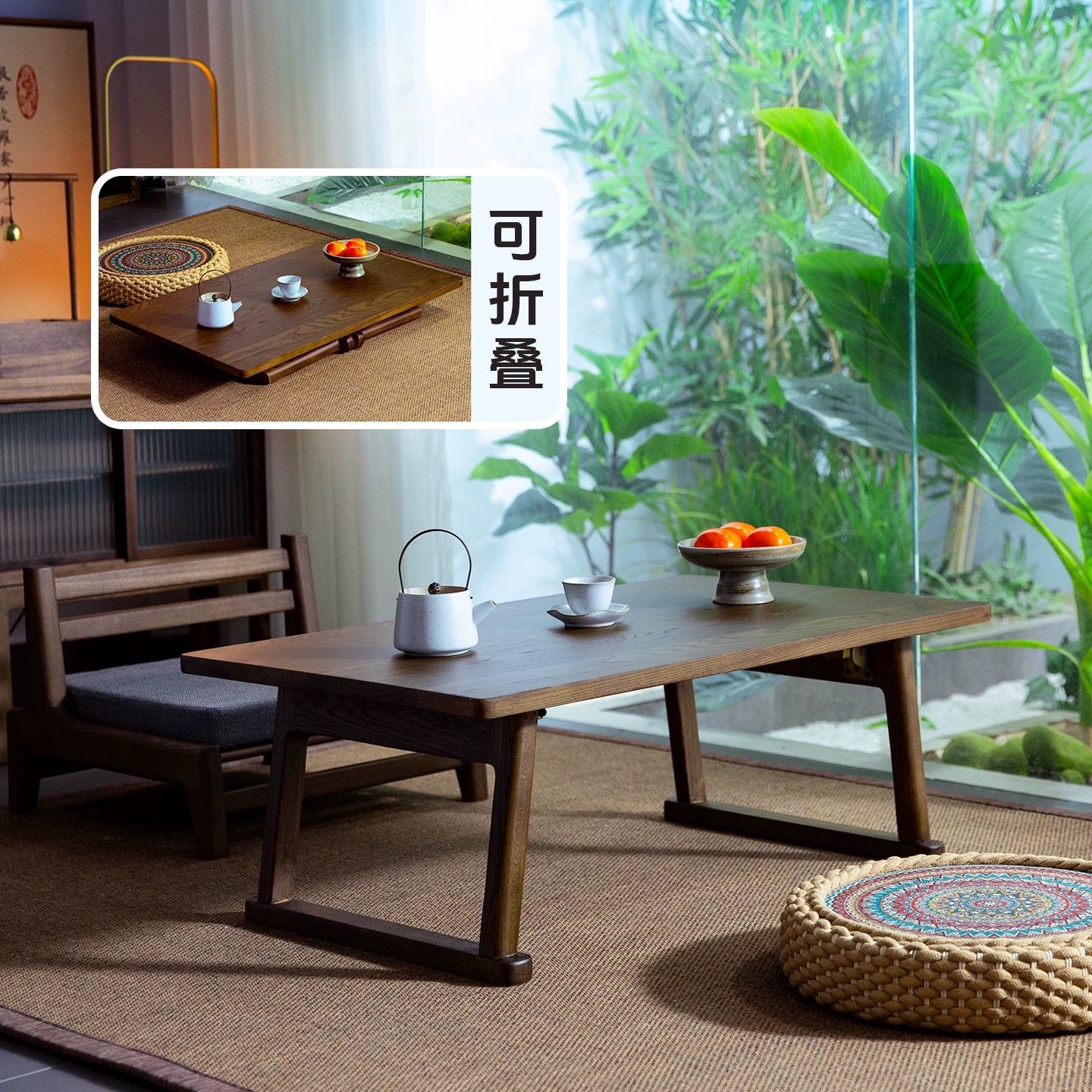 乐朴可折叠飘窗桌老榆木榻榻米茶几纯实木简约炕桌小桌子地台矮桌