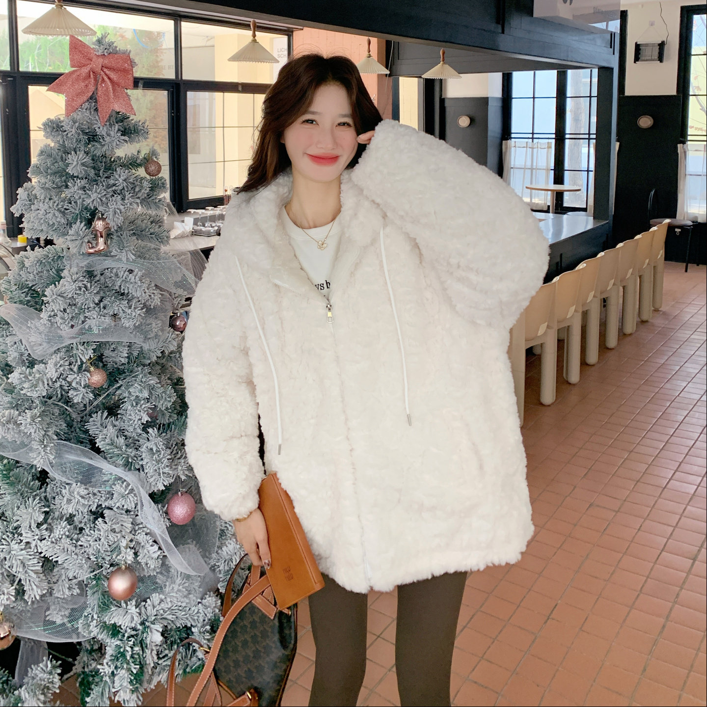 - 中长款羊羔毛外套女学生