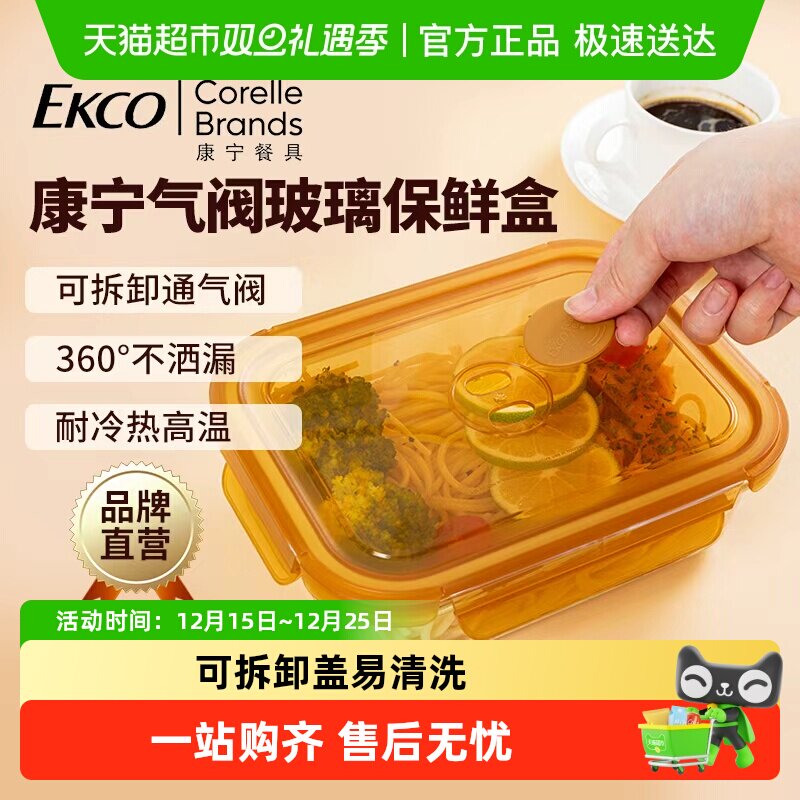 禧天龙水果耐热玻璃保鲜盒便当盒食堂简约分隔饭盒微波炉密封盒碗