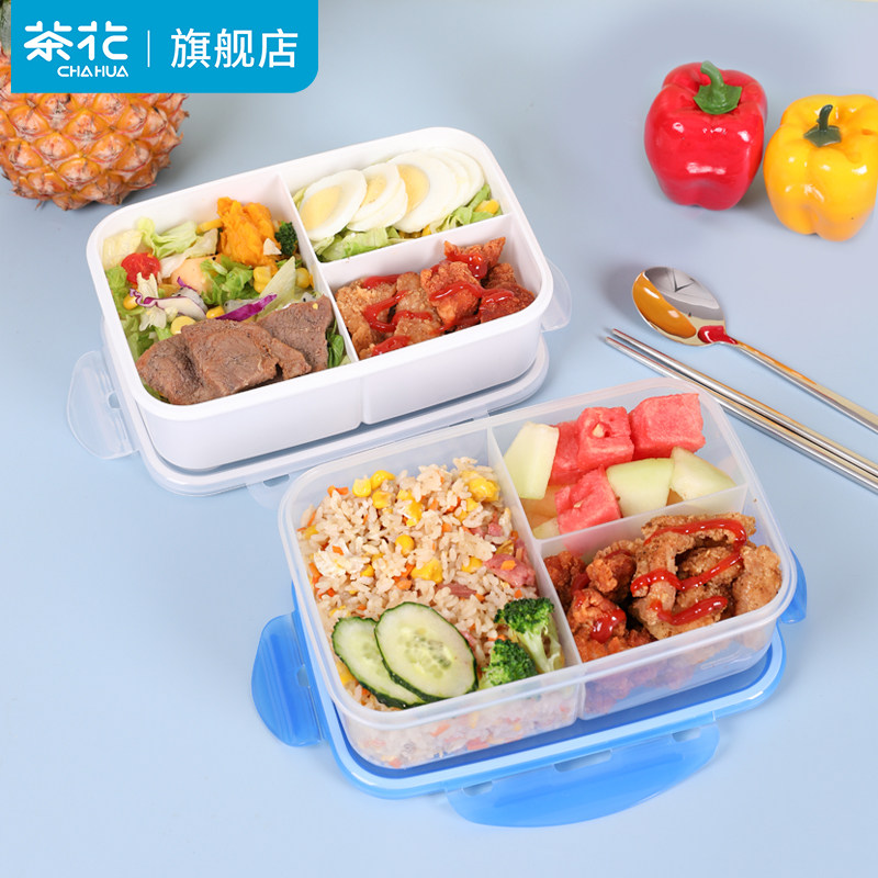 茶花分隔饭盒可微波炉加热带饭上班族便当盒分格专用保鲜盒大容量