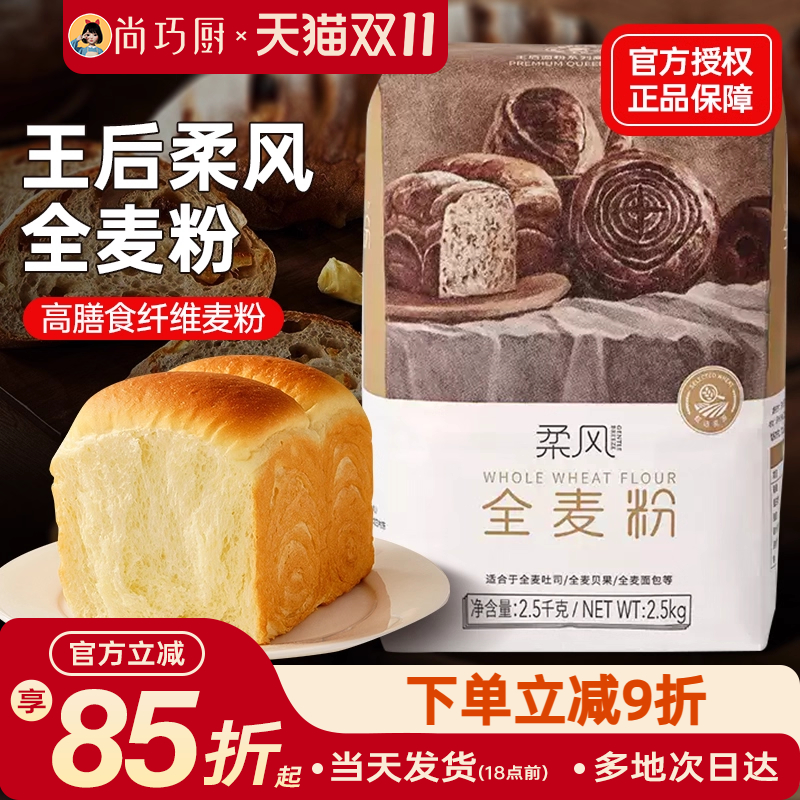 • 王后柔风全麦粉面粉吐司面包粉家用高筋杂粮粗粮皇后5斤烘焙专用