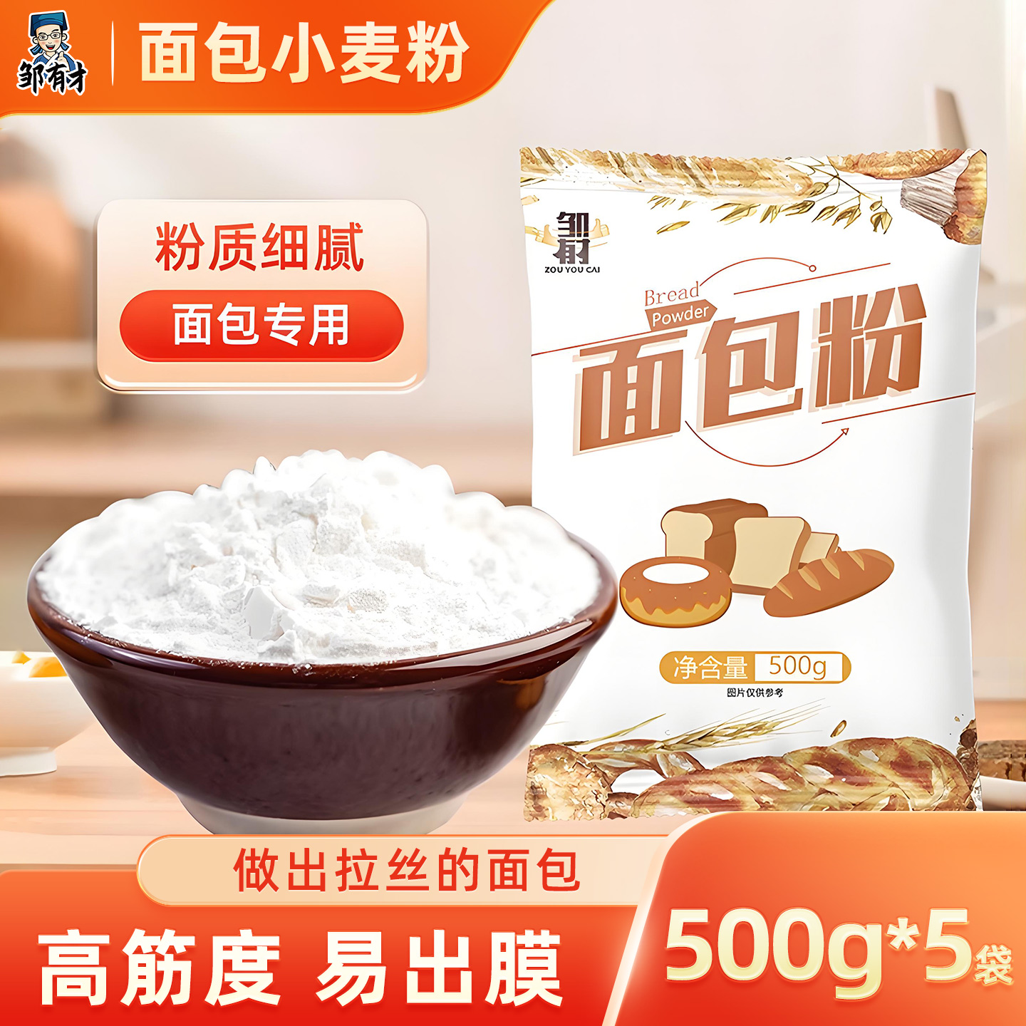 • 高筋面粉烘焙专用面包粉家用做吐司披萨的材料全麦高筋粉小麦高精
