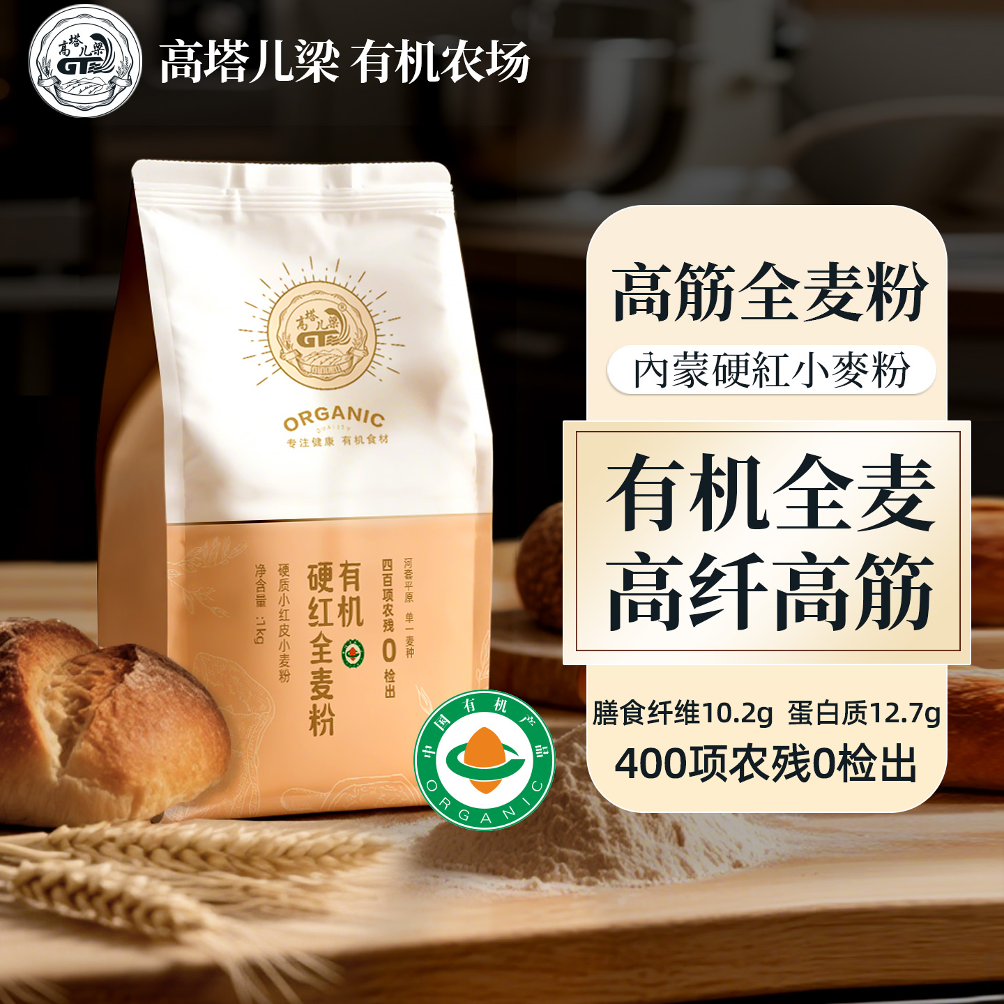 • 高塔儿梁有机全麦面粉高筋面粉吐司面包粉烘焙家用粗粮全麦粉