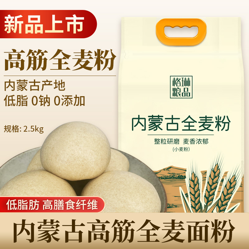 • 全麦面粉5斤烘焙高筋全麦粉面包馒头吐司饺子家用膳食纤维纯小麦