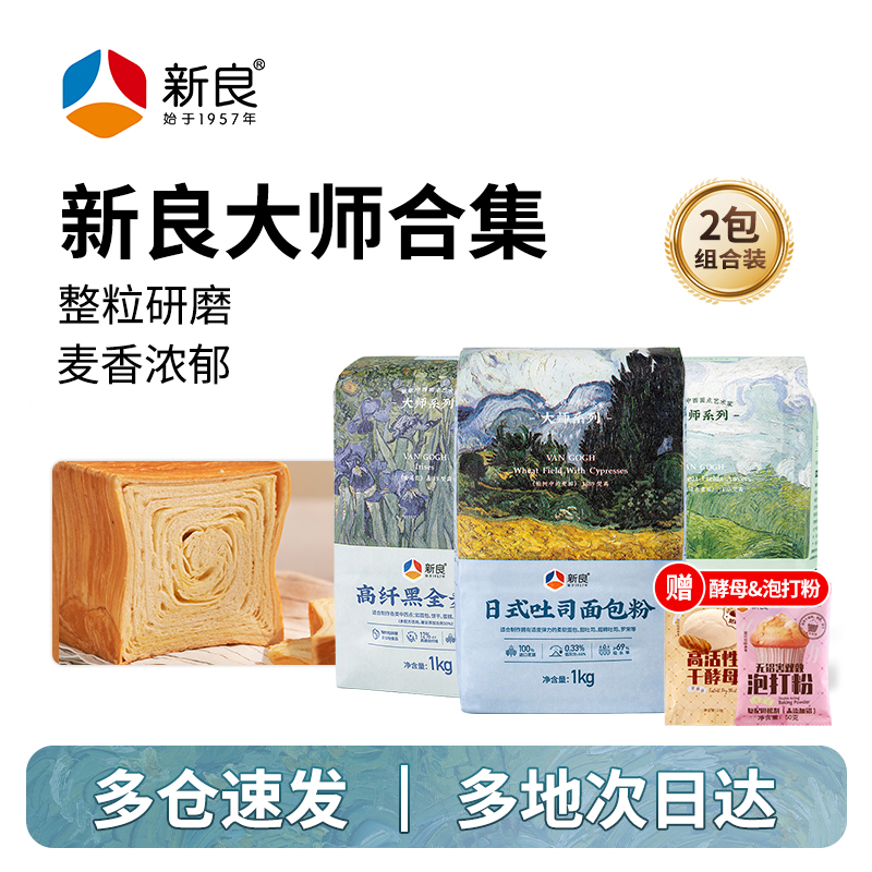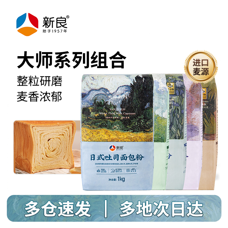 • 新良大师日式吐司面包粉1kg 全麦高筋面粉低筋小麦粉家用烘焙专用
