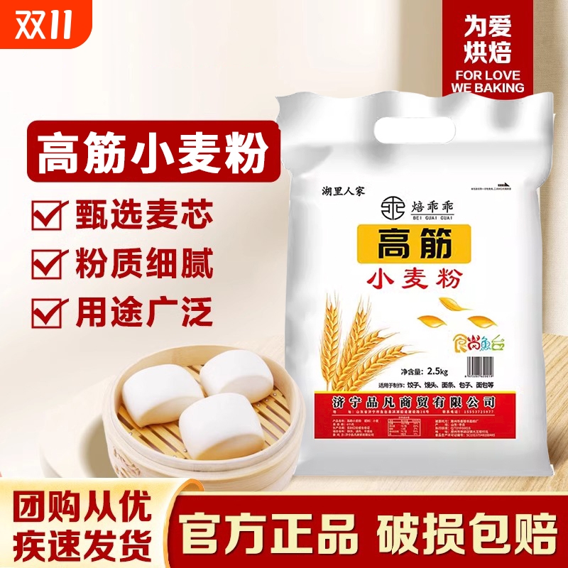 高筋面粉面包粉5斤烘焙家用面粉包子饺子馒头面条披萨全麦粉2.5kg