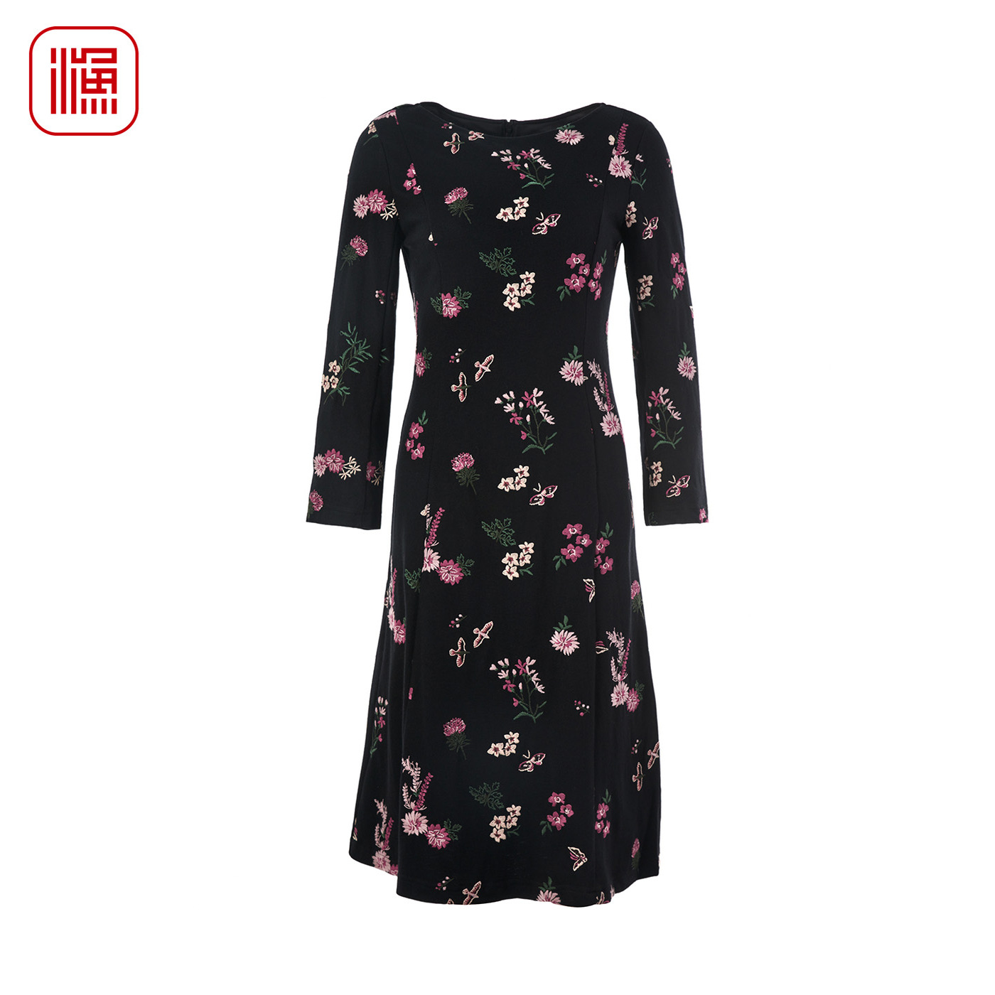渔牌女装连衣裙重工刺绣满身绣花气质裙子秋冬季显瘦女裙FGFD0006