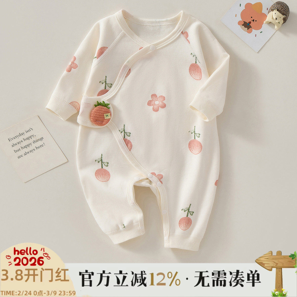 婧麒新生婴儿儿衣服纯棉连体衣59码初生宝宝和尚服春秋季偏开哈衣