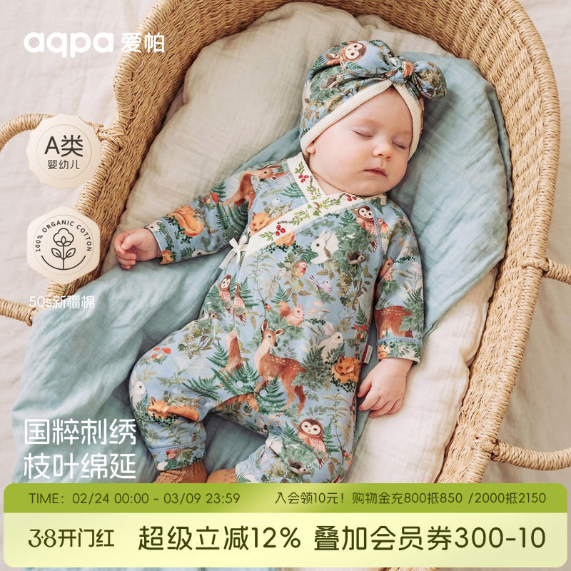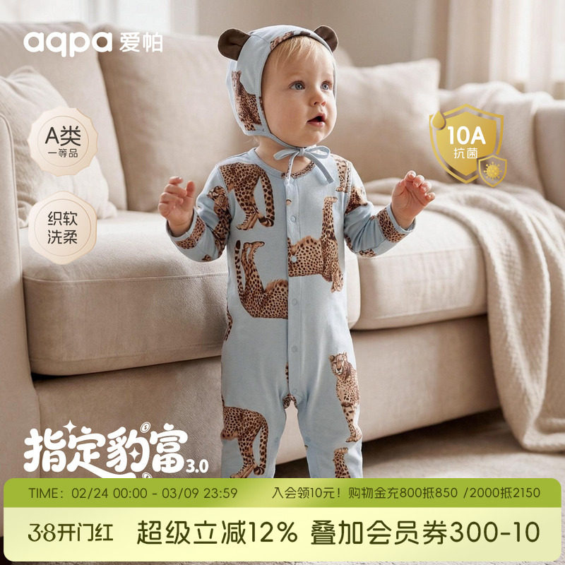 [指定豹富] aqpa爱帕婴儿连体衣纯棉60S春秋哈衣爬服新生宝宝衣服