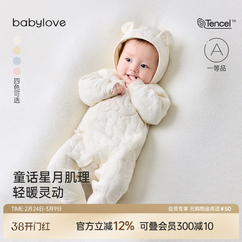 babylove新生儿连体衣春秋薄夹棉哈衣宝宝纯色和尚服星月婴儿衣服