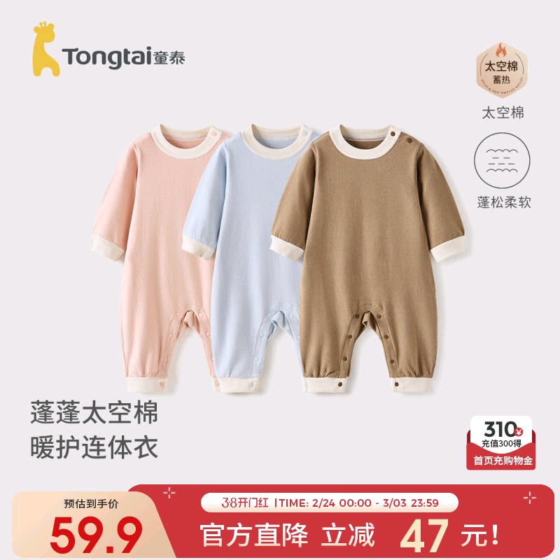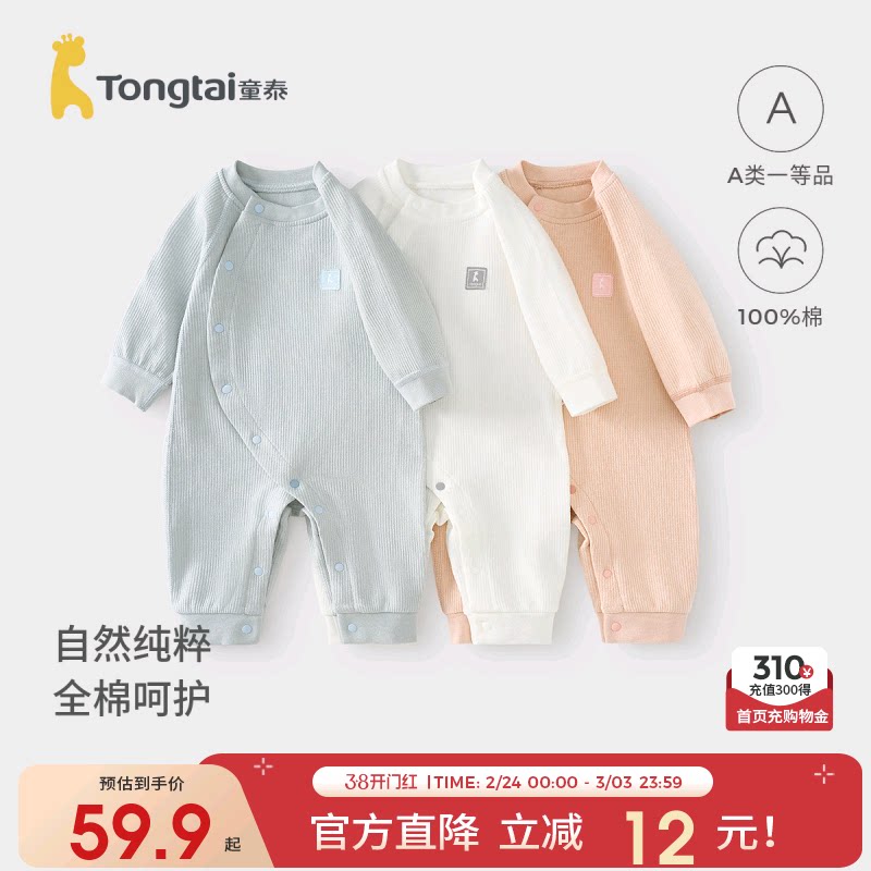 童泰婴儿连体衣春秋纯棉宝宝衣服家居服睡衣满月百天哈衣爬服春装