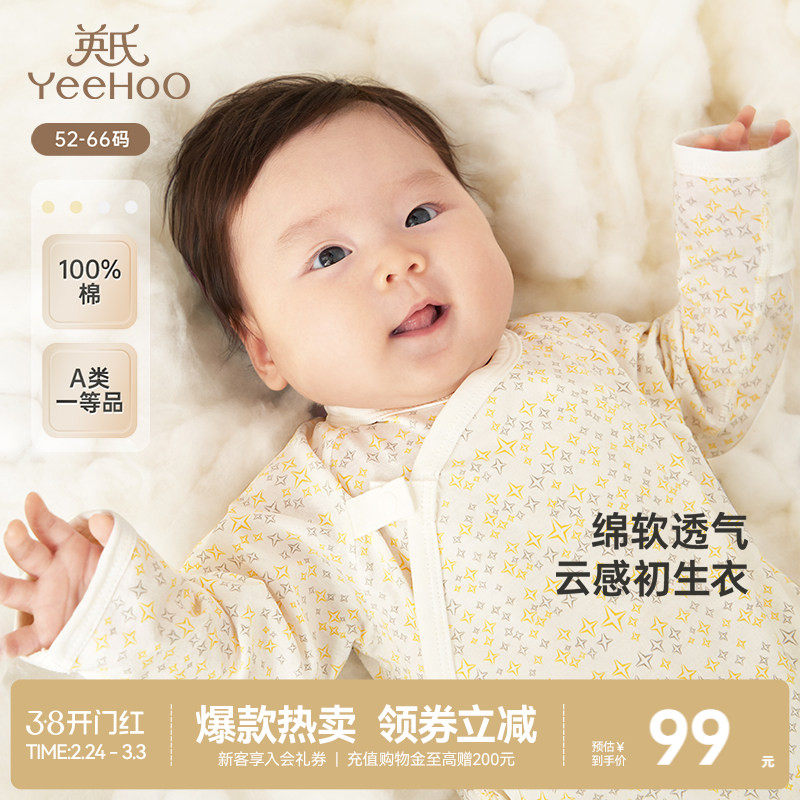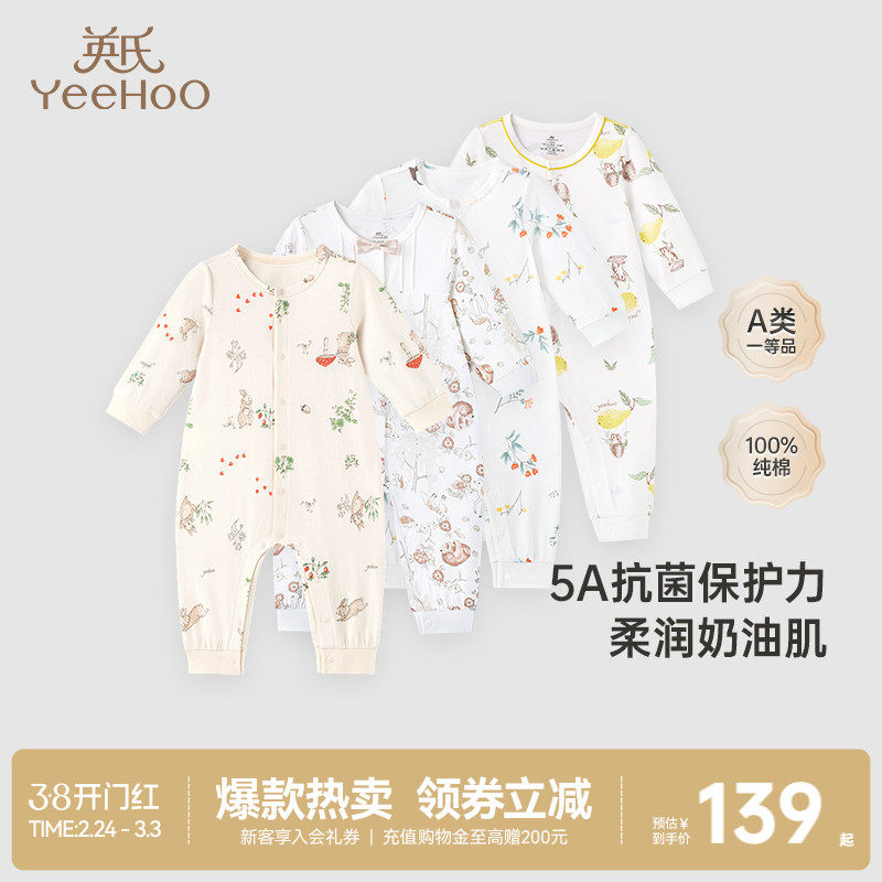 英氏婴儿春季连体衣乳木果宝宝哈衣秋冬新生儿纯棉衣服春秋款爬服