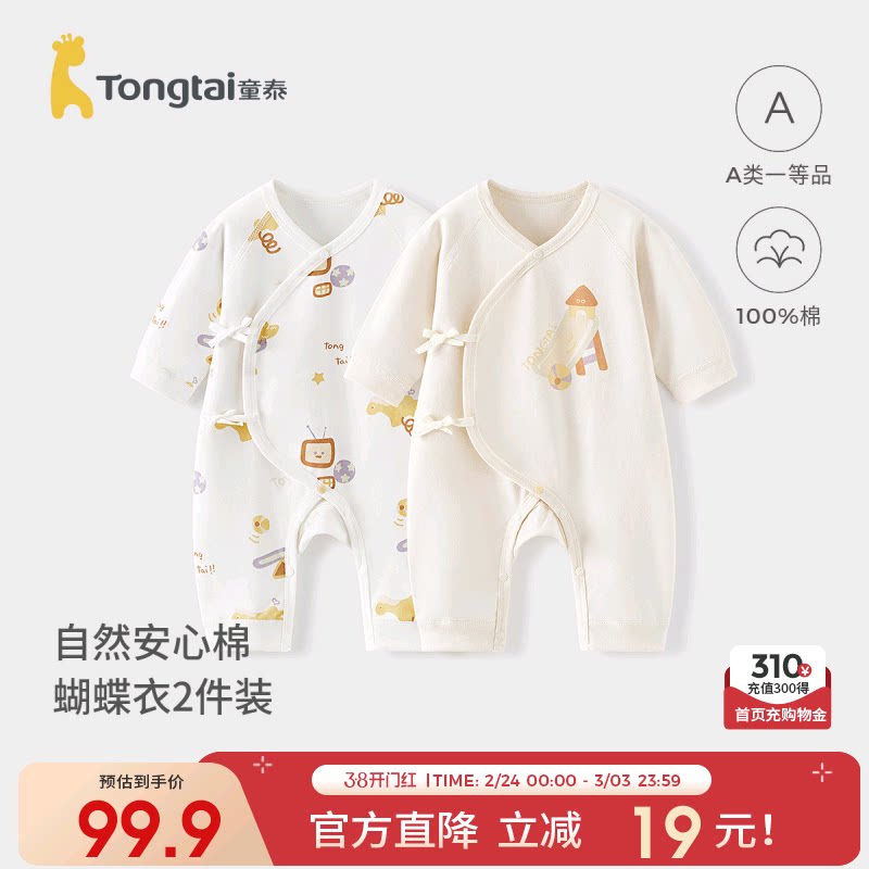 童泰婴儿连体衣春秋季纯棉新生儿衣服初生宝宝蝴蝶哈衣爬服满月服
