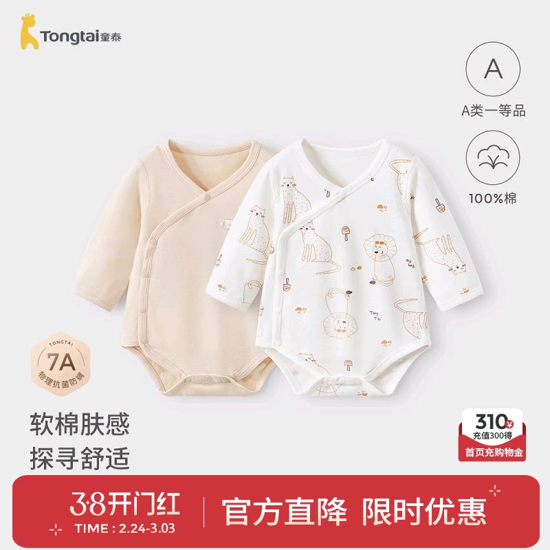 【新生儿衣服清仓】童泰婴儿连体衣爬服半背衣宝宝套装纯棉春秋冬