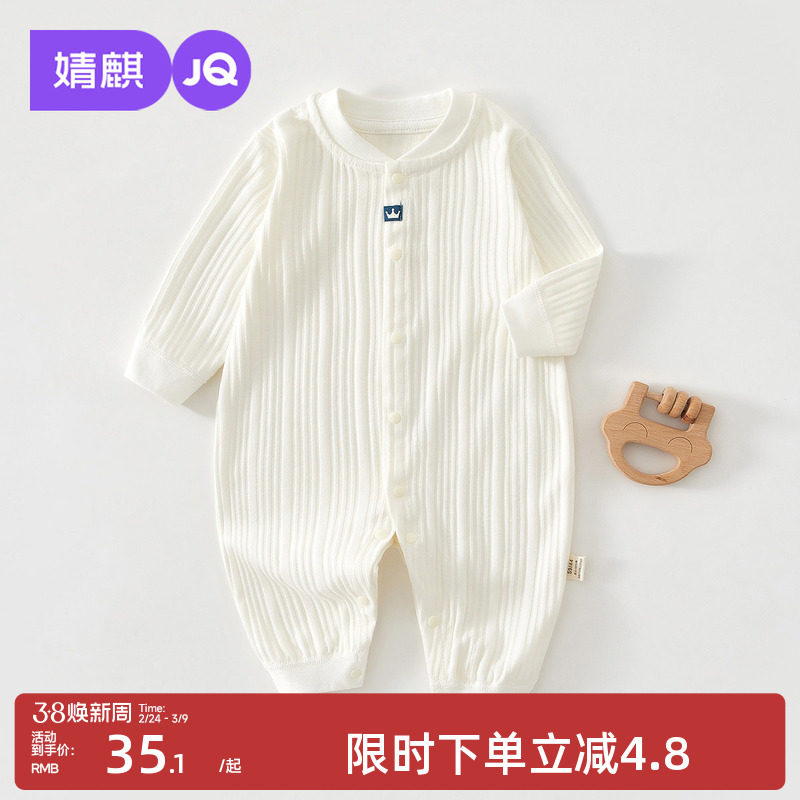 婧麒婴幼儿连体衣春秋宝宝长袖包屁衣夏季52码纯棉a类新生儿哈衣