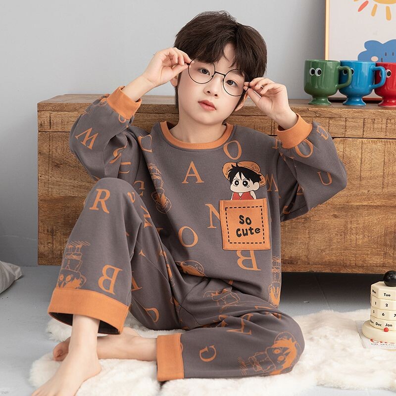芬腾男童睡衣春秋纯棉长袖套装男孩可爱卡通儿童中大童全棉家居服