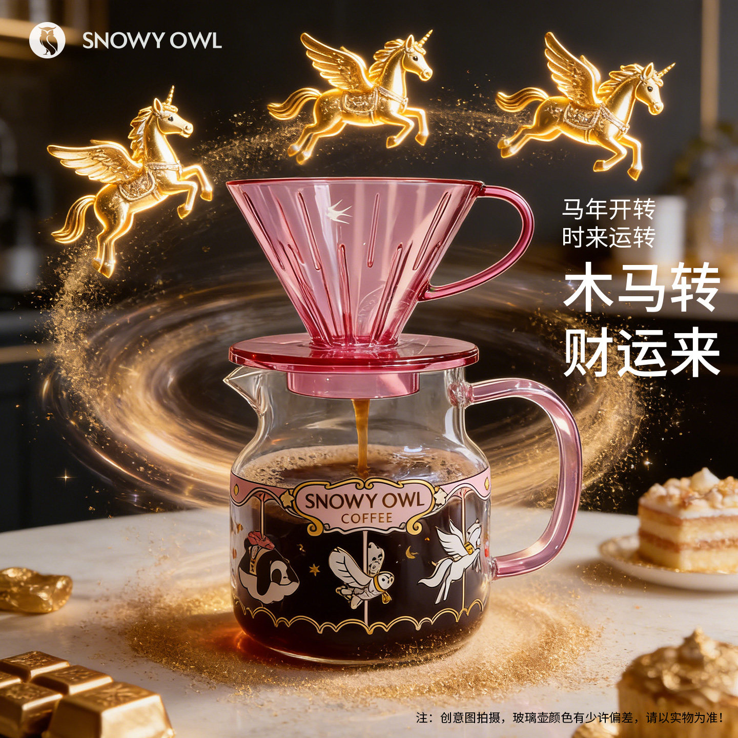 SNOWYOWL 雪昂咖啡 不锈钢咖啡壶 长嘴挂耳手冲壶套装 粉色冲泡壶