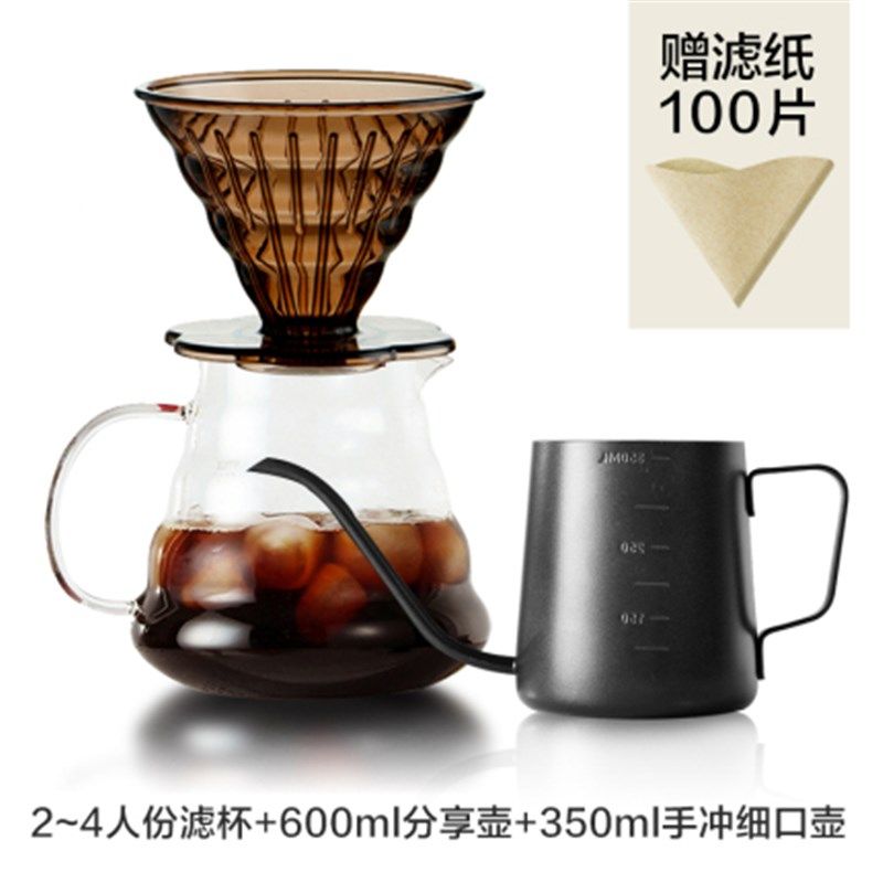 手冲咖啡壶套装玻璃分享壶树脂咖啡滤杯V60滴漏式过滤器滤纸漏斗
