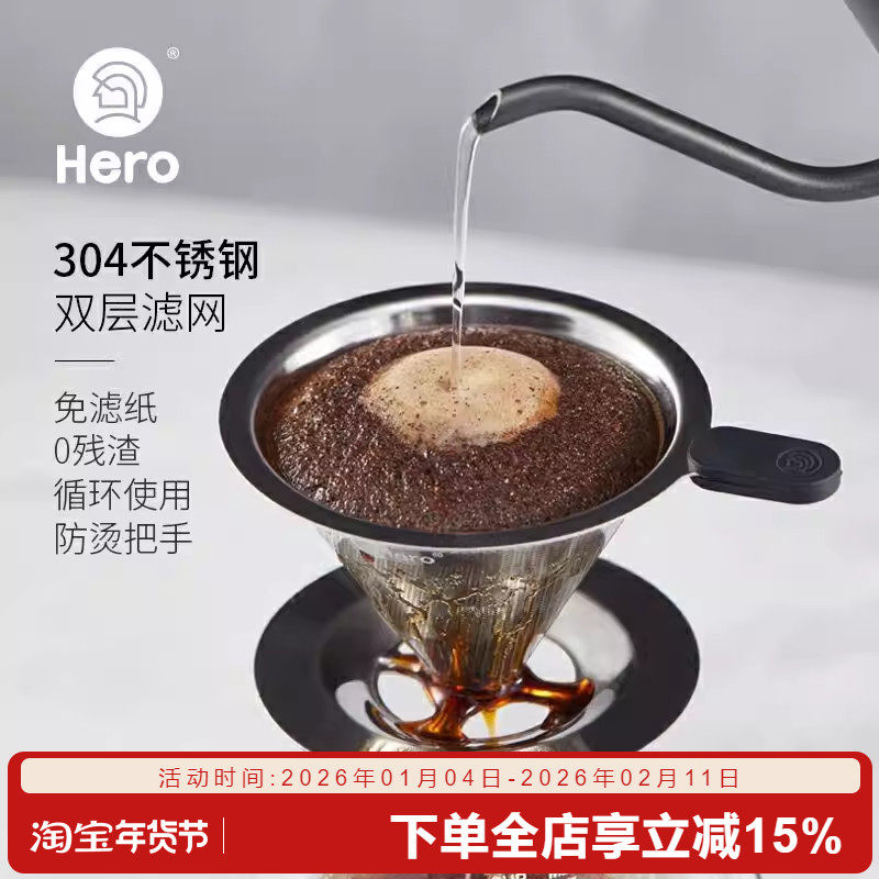Hero咖啡过滤网手冲壶套装不锈钢滤杯便携咖啡过滤器便携式300目