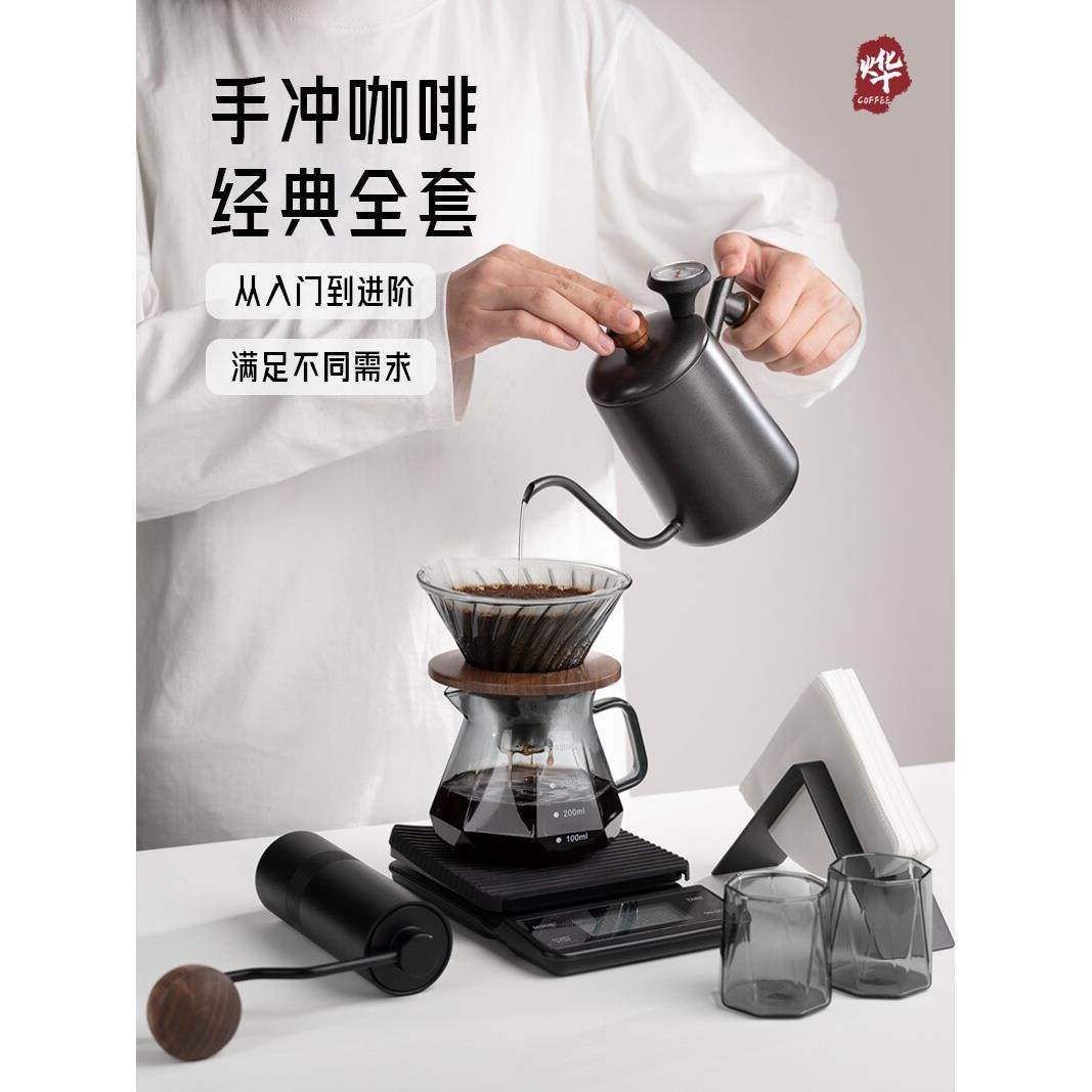 咖啡手冲壶套装手摇磨豆咖啡机过滤器具滤杯不锈钢细口玻璃分享壶
